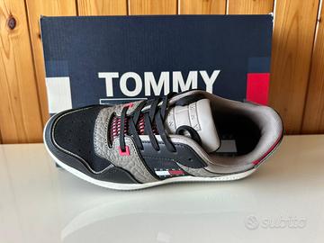 1. Sneakers Tommy Jeans * Modello: Basketball Heritage / Tech Sneaker. * Colore: Mix Nero, Grigio e dettagli iconici Tommy (Bianco/Rosso/Blu). * Taglia: [ 40 ] * Condizioni: 10/10 – Nuove di pacca, con scatola originale. * Dettagli: Design robusto, logo laterale gommato e suola preformata molto comoda.