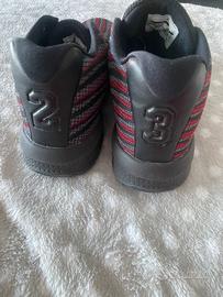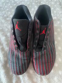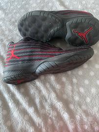 Sneakers originali della Nike modello Jordan, fly perfette per il basket in tessuto a righe grigie, nere e rosse con logo e numero 23 impresso nel cuoio suola in gomma antiscivolo sono in perfetto stato indossate due volte, ma mancano i lacci. #nike #jordan #jordanfly #sneakers