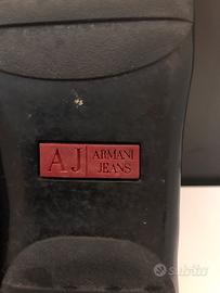 Sneakers Armani Jeans taglia 40, tutte in pelle, usate pochissimo per errato numero. Colore nero. Suola in gomma