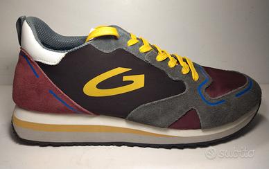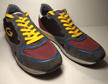 Sneakers uomo EU 45. In pelle e tessuto tecnico traspirante bordeaux, grigio, nero, blu e giallo - Alberto Guardiani - Usati poco, in ottime condizioni. Con scatola originale
