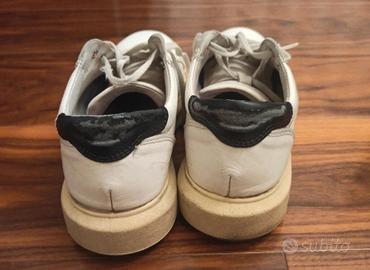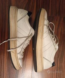 Scarpe uomo. Sportive in pelle. Numero 42. Tomaia in pelle. Suola di gomma bianca. Usate con evidenti segni di usura ma sono integre, strutturalmente solide e molto comode. Usura nella parte retrostante (vedi foto).