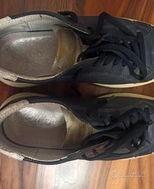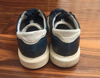 Scarpe uomo in pelle, sportive. Marca Igi&Co. Numero 42. Colore blu navy. Tomaia in pelle. Suola di gomma bianca. Usate con evidenti segni di usura ma sono integre, strutturalmente solide e molto comode. Usura nella parte retrostante e sulla linguetta anteriore (vedi foto)