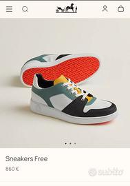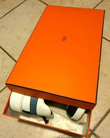 Vendo Sneakers originale HERMES valore €860, come nuove. Taglia 41, perfette e bellissime, nessuna piega, nessun tipo di usura sulle varie parti. Confezione originale con porta scarpe. Manifattura pregiata di altissima qualità di un grande marchio di prestigio del settore calzature. Vendo a €400