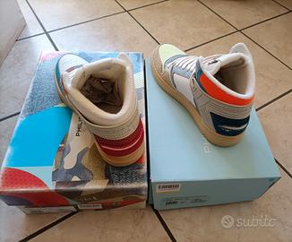 Vendo due paiot di sneakers in vera pelle e tessuto tecnico per uomo Philippe Model di taglia 42 misura italiana. Modello La Grande Mid Man Multicolor. ORIGINALI. Effettuata verifica autenticità con QR CODE presente all'interno delle scarpe. Nuove con scatola. Senza difetti. Sneakers con effetto vintage con suola in gomma. Sigillo monouso ancora presente che attesta che le scarpe non sono mai state indossate.