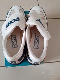sneakers uomo marca PONY colore bianche/blu, suola i gomma nera, misura 41,5