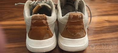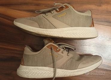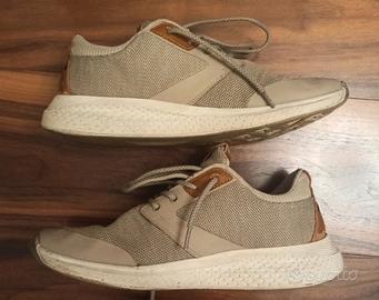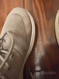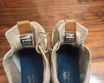 Scarpe da uomo, marca Wrangler. Modello sequoia city. Linea sportiva. Tomaia in tessuto. Numero 42. Colore corda. Suola in gomma bianca. Usate con evidenti segni di usura. Usura nella parte retrostante (vedi foto) e lacci da sostituire.