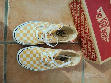 Scarpe sportive Vans Authentic a quadretti bianche e ocra con lacci. Indossate una sola volta. Vendo per inutilizzo con scatola ed etichette. Unisex. Taglia 36.5. ancora in vendita sul sito ufficiale