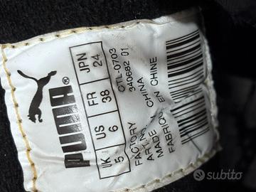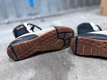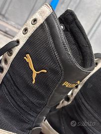 Vendo rarissime sneakers Puma Schattenboxen originali dei primi anni 2000. Un modello iconico dal design a stivaletto alto, ispirato alle calzature da boxe e shadow boxing. Perfette per amanti dello stile vintage Y2K, techwear o per chi cerca una scarpa dal profilo sottile e leggero. Caratteristiche: Modello: Puma Schattenboxen (Schatten Boxen). Stile: Boxing / Lifestyle High-Top. Colore: Nero e Crema con ricamo dorato laterale. Condizioni: Buone condizioni generali per l'età. Le suole sono originali e ancora in buono stato (vedi foto). Presentano normali segni di utilizzo che ne accentuano il carattere vintage. Note: Si prega di guardare attentamente le foto per lo stato estetico. Vendute con formula "visto e piaciuto". possibile consegna a mano zona lecce brindisi taranto