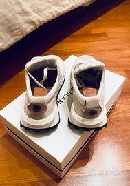 Bellissime sneakers del brand emergente Voile Blanche (italianissimo a dispetto del nome) di colore bianco, taglia 43. Vestono un po’ larghe (tipo Hogan), infatti mi ero illuso di poterle portare anche io che abitualmente calzo una 44. Il brand è emergente ma già noto, con scarpe di qualità, prevalentemente sneaker e da barca. La sua peculiarità è quella di utilizzare materiali da nautica, come i tessuti per le vele (… da cui il nome del brand). Questo è il modello Qwarq Man, il loro più iconico e secondo me il più bello e “stiloso”. Lo vendo perché nel negozio (fisico) dove la acquistai mancava la mia taglia e, calzando un po’ largo, pensavo di poterle utilizzare. Indossate due volte … forse tre. Ci sono piccoli segni nella gomma sul retro. Vendo a meno della metà del loro valore commerciale (vedi ultima foto) !!! Per chi ne ha sentito parlare e vuole provarle senza svenarsi … e per intenditori !!!