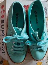Sniker Superga n.36. Indossate una sola volta per numero errato. Colore turchese. in tela e corda.