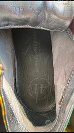 Soisires Soiebleu sneakers donna in pregiata pelle stampata a mano, con stampa di foulard e lacci in raso multicolor, comode e belle, indossate un paio di volte, ottime condizioni.Taglia 41. Soletta interna estraibile con rialzo.