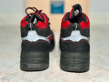 Vendo scarponcini antinfortunistici Soldini Professional U 983 Rosso, taglia 41, colore nero/rosso. Prodotto Made in Italy, con suola antiscivolo ad alta aderenza, puntale rinforzato, fodera traspirante Klimatex, e ottimo comfort per uso intensivo. Completi di scatola originale. Data di produzione: 05/2024