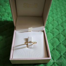 Solitario con brillante naturale in oro 9kt. originale Stroili, MAI indossato. diametro interno 1.7cm. regalato da pochissimo, vendo con scatola originale e certificazione di garanzia.