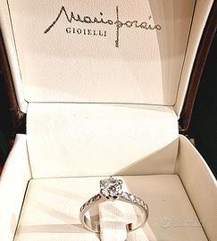 solitario oro bianco e diamanti centrale ct 0,60 laterali ct 0,18 per lato colore D purezza VVS1 Misura 15