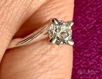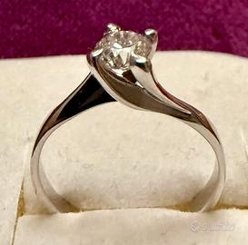 Vendo splendido anello solitario in oro bianco con diamante naturale da 0,50 carati, colore G/H, brillante e luminosissimo.