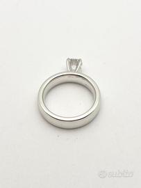 Anello in oro bianco 18 KT (750 ‰) di grammi 9.48, modello solitario con diamante naturale forma tonda e taglio a brillante di ct 0.76; purezza IF colore F. Certificato HRD. Firmato SALVINI.