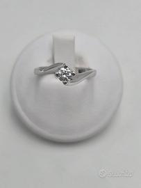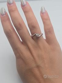 Splendido solitario in oro bianco massiccio 18 carati con pregiato diamante centrale naturale taglio brillante di 0,20 carati.