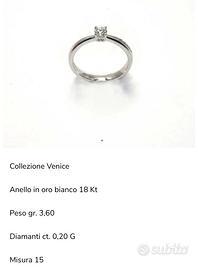 Anello in ottime condizioni, regalato e poi restituitomi dalla mia ex ( non ho ne scatola ne certificazioni in quanto non mi sono state restituite). L’anello presenta un doppio diamante come in foto