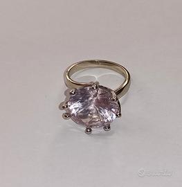 solitario vintage, misura 11, in oro bianco 18 k con Rosa di Francia montata a giorno. diametro della pietra 12.9 mm. peso gr 5.2