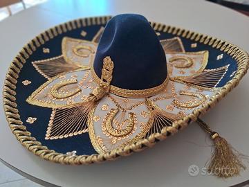 Sombrero originale Salazar, nero con decorazioni oro. Provenienza Messico anni'90. Perfetto. Diametro 60 centimetri.