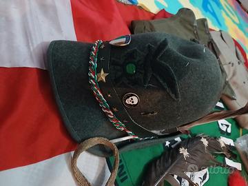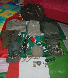 vendo tutto in blocco Due Capellini di alpini,Due paia di pantaloni militari Due camice e un capoto. Un paio di ghette di uniforme esercitò. Due bandiere di Italia e una bandiera dei alpini. Una borsa militare. Entro 15 chilometri gli posso portare.