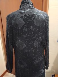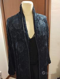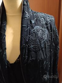 soprabito in seta damascata anni '20, blu con rose in rilievo,lungo, veste taglia 44/46. senza fodera. Indossabile.