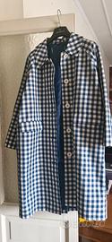 Impermeabile over size, a quadro bianco e blu Manica a raglan Tasche con patellina