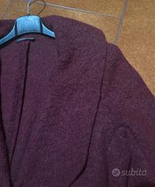 soprabito in lana color bordeaux con un gancetto davanti lungo fino a sopra il ginocchio piu o meno