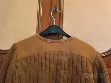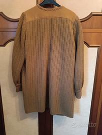 Soprabito sfoderato sartoriale in lana lavorata con inserti in panno di lana, senza allacciatura, lunghezza al ginocchio, taglia 44/46