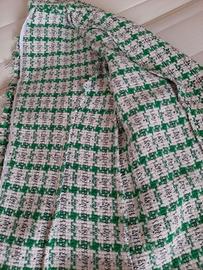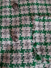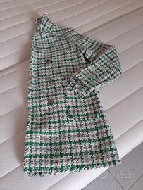Soprabito sfoderato in cotone 100% colore bianco e verde , tessuto lavorazione stile tweed sfrangiato.Tasche applicate, bottoni in metallo decorativi. Taglia S - lunghezza (da spalla a orlo) cm. 72.