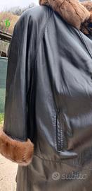 Vendo causa inutilizzo soprabito nero in vera pelle morbidissima, fodera rasata di ottima qualità e leggerissima imbottitura; collo in pelliccia che si presta a chiusura ad anello.