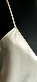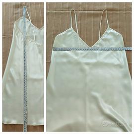 Elegante sottoveste da notte, in raso, color bianco perla, morbida e leggera. Vestibilità comoda e raffinata