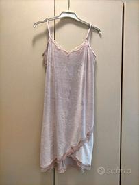 Sottoveste in ciniglia color cipria e pizzo. Marca Verdissima. lunghezza cm 80 + spalline, larghezza cm 45.