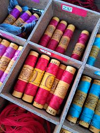 Vendo cassettiera contenente circa 500 spagnolette nuove da 10 metri di filo 100% Seta Bozzolo Reale titolo 24, colori misti. Ottimo per ricamo, occhielli, tombolo ed epilazione a filo arabo o orientale. Prodotto Made in Italy altamente professionale, alta qualità e gran valore. Vendo lotto unico ad un prezzo da concordare.