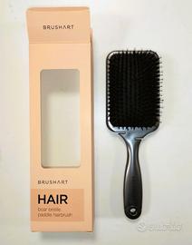 è una spazzola piatta per capelli con setole di cinghiale e nylon che assicura un tiraggio minimo dei capelli.