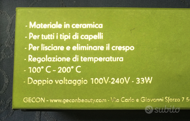 Spazzola lisciante GECON pochi mesi di vita colore verde petrolio.rivestimento in ceramica regolazione della temperatura da 100°a 200° in pochi secondi (antiscottatura per la pelle)per ottenere un effetto liscio e anticrespo.