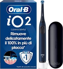 Oral-B iO 2 Spazzolino Elettrico Oral B, Blu, 1 Testina Di Ricambio, 1 Custodia Da Viaggio, Spazzolino, Delicato sulle Gengive, Efficace sulla placca, Sensore di Pressione DENTI 100% PIÙ PULITI rispetto ad uno spazzolino manuale tradizionale; tecnologia iO di Oral-B: EFFICACE SULLA PLACCA, DELICATO SULLE GENGIVE PROGETTATO PER PASSARE ALL'ELETTRICO CON FACILITÀ; basta un semplice per scegliere tra 3 livelli di intensità, spazzolamento silenzioso e batteria a lunga durata Proteggi le tue gengive con il SENSORE DI PRESSIONE AUTOMATICO che rallenta la velocità e ti avvisa con una spia rossa quando spazzoli i denti con troppa forza SCEGLI IN MODO FACILE LA TUA PULIZIA PERFETTA con 3 LIVELLI DI INTENSITÀ SILENZIOSI: Super Delicata, Delicata, Pulizia Quotidiana TIMER DI 2 MINUTI, COME CONSIGLIATO DAL DENTISTA, che ti avvisa ogni 30 secondi per cambiare la zona di spazzolamento