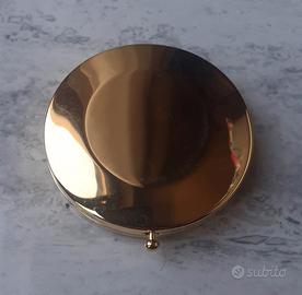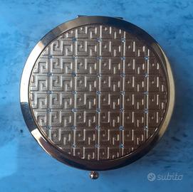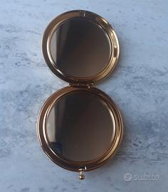 Bellissimo specchietto dorato in metallo e piccolissimi strass in cristallo swarovski, ho anche la bustina in tessuto e la sua scatola originale. Acquistato qualche anno fa e mai usato, è perfetto come nuovo. Ottimo anche come idea regalo.