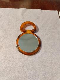 specchietto vintage in plastica, anni 70, a due lati, uno ingrandente, diametro 9, cm, con anello per appenderlo