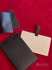 "Saint Laurent Paris" centrale. È dotato del suo laccetto in pelle nera per poterlo inserire o agganciare facilmente all'interno della mini custodia.