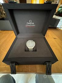 Corredato di un bracciale spazzolato a 5 maglie incurvate per fila, questo Moonwatch da 42 mm in acciaio inossidabile presenta un vetro esalite sul quadrante e un medaglione con ippocampo goffrato sul fondello. Ispirato allo Speedmaster di 4a generazione indossato sulla luna, il modello si distingue inoltre per la cassa asimmetrica, il quadrante “step” nero e il celebre indice “Dot over 90” sull’anello della lunetta in alluminio anodizzato.