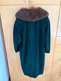 Splendido cappotto vintage autentico firmato Corilady, con pelliccia, un'eccellenza del Made in Italy. Il capo si presenta in un elegantissimo verde bosco profondo. Tessuto interno 85% lana vergine