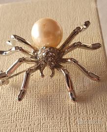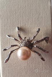 vendo spilla a forma di ragno con corpo in metallo e perla artifuciale