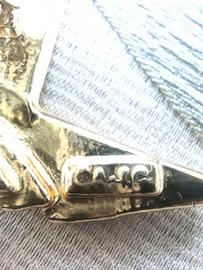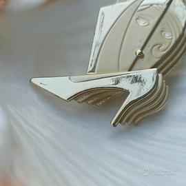 spilla a forma di un uomo, una donna e una scarpa col tacco alto, in stile Art Déco. È un pezzo da collezione prodotto da AJC (American Jewelry Company).