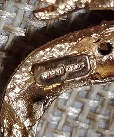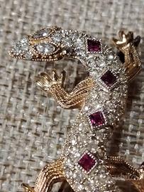 Bellissima spilla in argento 800 bagnato in oro con cristalli rossi e bianchi