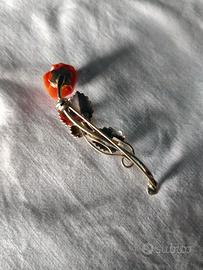 Splendida spilla vintage realizzata in lamina d'argento punzonato 800 (sul retro delle foglie) con credo un bagno in oro delle stesse, la rosa è realizzata in pasta di corallo. Misura lungo 5.5 cm largo 2 cm lunghezza ago 4 cm. Le foto descrivono esattamente il gioiello e sono parte integrante della descrizione. Visita il mio profilo per altri gioielli e non solo.