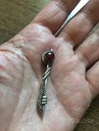 Spilla argento 925 e malachite con granato diametro 0,8 lunghezza 5 cm