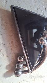 Spilla vintage stile art decó a forma triangolare in argentoned onice nero. perfette condizioni