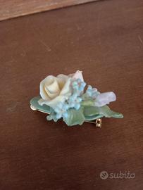 vendo spilla in ceramica con rappresentazione di un mazzo di fiori montato su gancio metallo