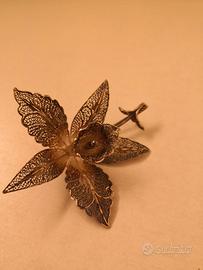 Vendo Spilla da giacca o cappotto fatta a mano, in argento filigranato, anni '50, rappresenta un'orchidea, oggetto molto raro, diametro della spilla cm. 6 + cm 1.5 del fermaglio. Mai usata, in perfette condizioni. Se telefonate a Graziano 340-4110406 dalle 10 alle 19. Si spedisce solo dopo eventuale bonifico più spese di spedizione, oppure, la merce va ritirata personalmente e pagata in contanti, a Vago di Lavagno (VR) o, previo accordo nelle immediate vicinanze, max 10 Km.